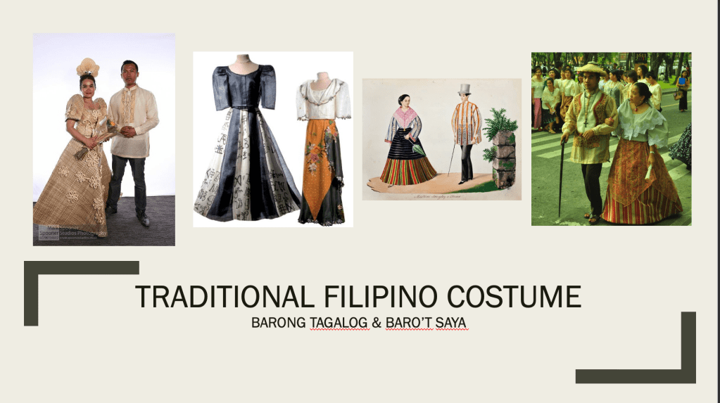 As previously mentioned, I want to include the national filipino costume for women which is baro’t saya/ filipiniana. The reason for focusing on Filipina women is because as one myself I wanted to show the numerous ways the attire can be worn.