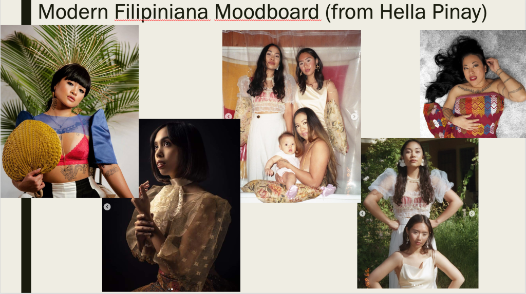 My sister recommended looking at online platform for Filipinas called “Hella Pinay” as inspiration. Through their instagram and website, I discovered the diversity of Filipinas not only living in the Philippines but around the world and see how well we all connect to each through our ancestry. Hella Pinay also gave me ideas for outfits to style and poses that evoke a Filipina.