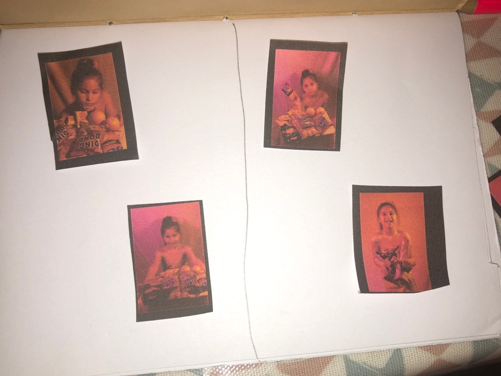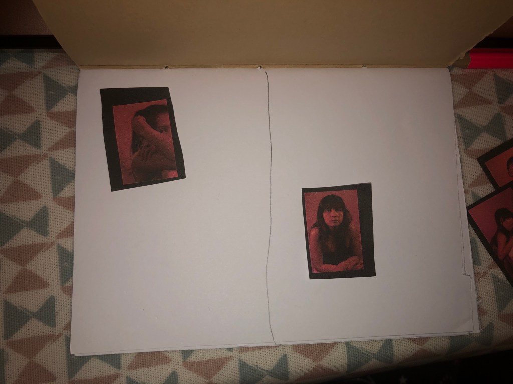 Before importing it all to InDesign I physically created a layout of my photobook using the book I made during our Photobook Making workshop. Keep in mind most pages are combined into one spread for continuity.