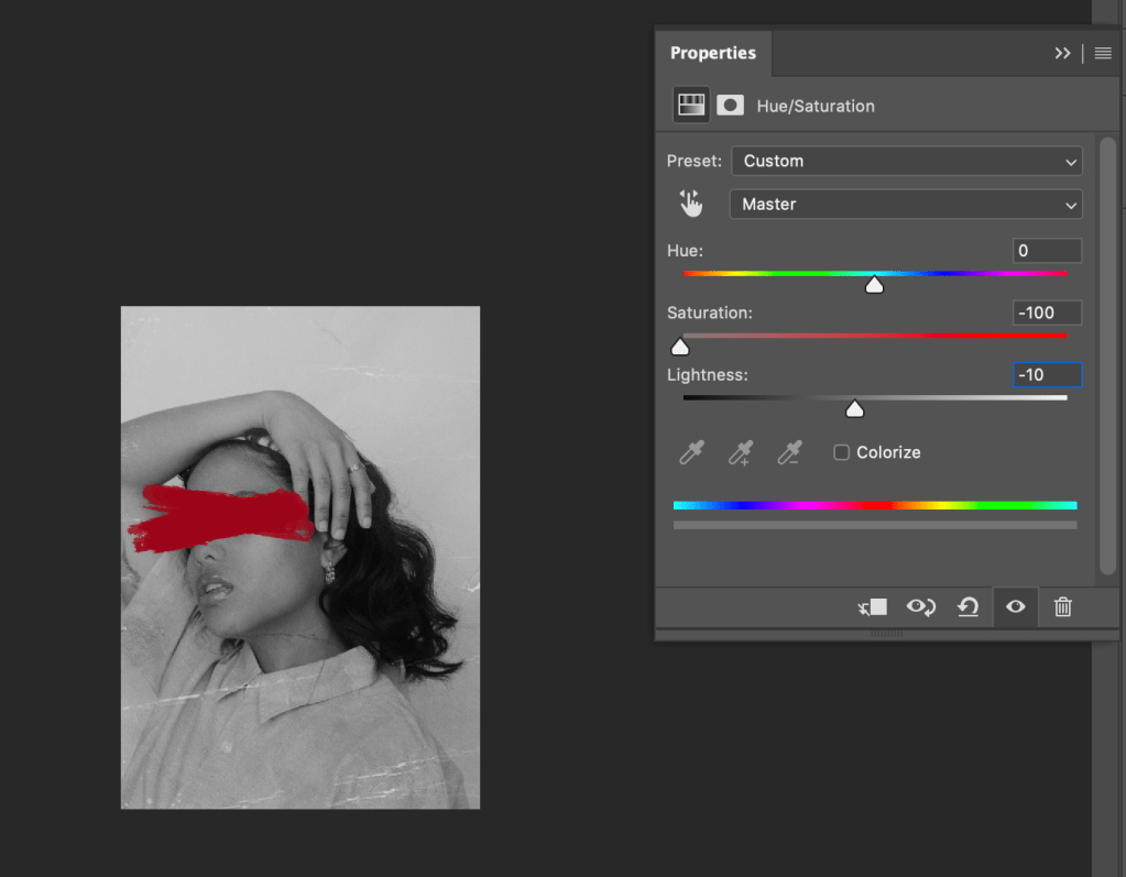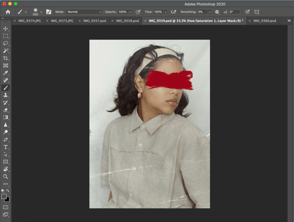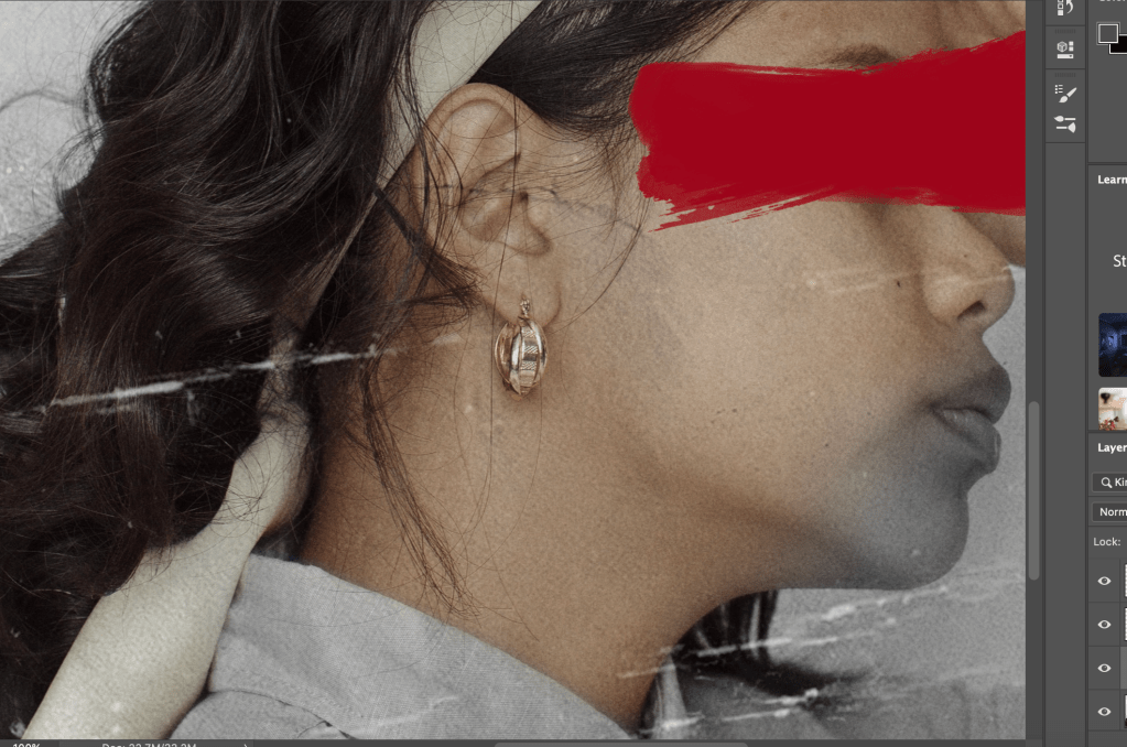 I ended up doing this for all the images. Also I made sure to research the right tone of red for the brush stroke and I chose red since it is a very emotionally intense colour, suiting my self-reflection theme.